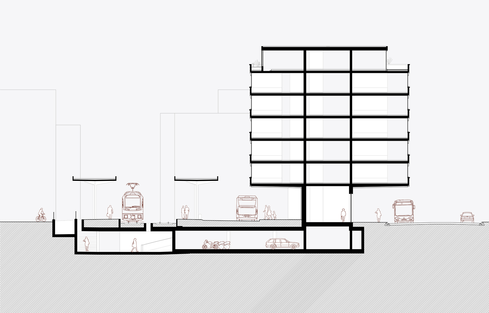 Programm: Neubau, städtisches Areal mit Bus- und Bahnhof, Wohnungen und Büros