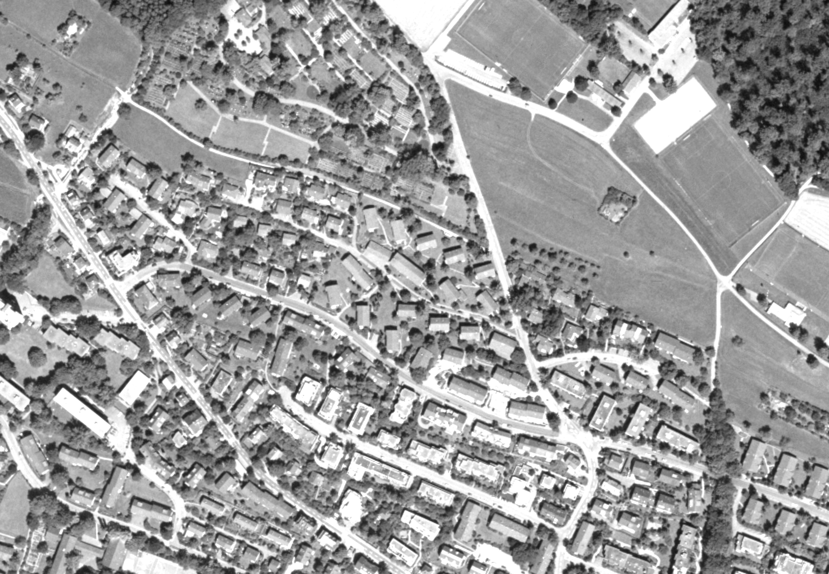 Betrachtet man Höngg aus der Vogelschau, so fallen die Häuser der Siedlung Hönggerberg sofort ins Auge. Während fast alle anderen Gebäude im Quartier entweder quer oder längs zum Hang ausgerichtet sind, stehen diese hier diagonal dazu, wie störrische Tiere in einer braven Herde. Aus der Froschperspektive des Stadtbewohners bewirkt diese Schrägstellung, dass der Freiraum ungehindert zwischen den Gebäuden hindurch fliessen kann. Die Strassen wirken nicht als Begrenzungen, sondern bewegen sich gleich ‚Parkways’ durch den Landschaftsraum, und immer wieder öffnen sich Durchblicke von erstaunlicher Tiefe, welche den Blick hinab ins Limmattal oder hinauf aufs offene Land am Hönggerberg freigeben. Lässt sich diese so prägende Besonderheit des Ortes in eine viel dichter bebaute Zukunft hinüberretten? Dieser Anspruch wurde zum Massstab der Neuplanung. Die zweite Prägung des Ortes sind die pittoresken Nadelgehölze: Föhren und Lärchen erinnern an alpine Milieus, wie sie für den Engadinerweg namensgebend waren. Auch diese Charakteristik soll in die Neuplanung einfliessen.