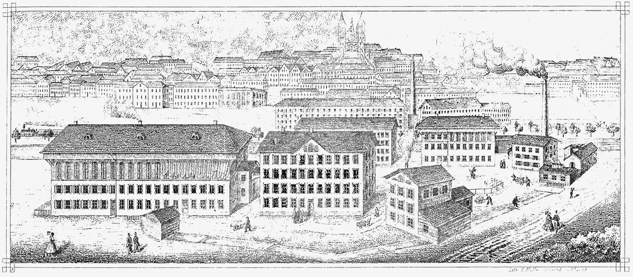 Gesamtansicht der Druckerei Jenny und Cie. in Ennenda