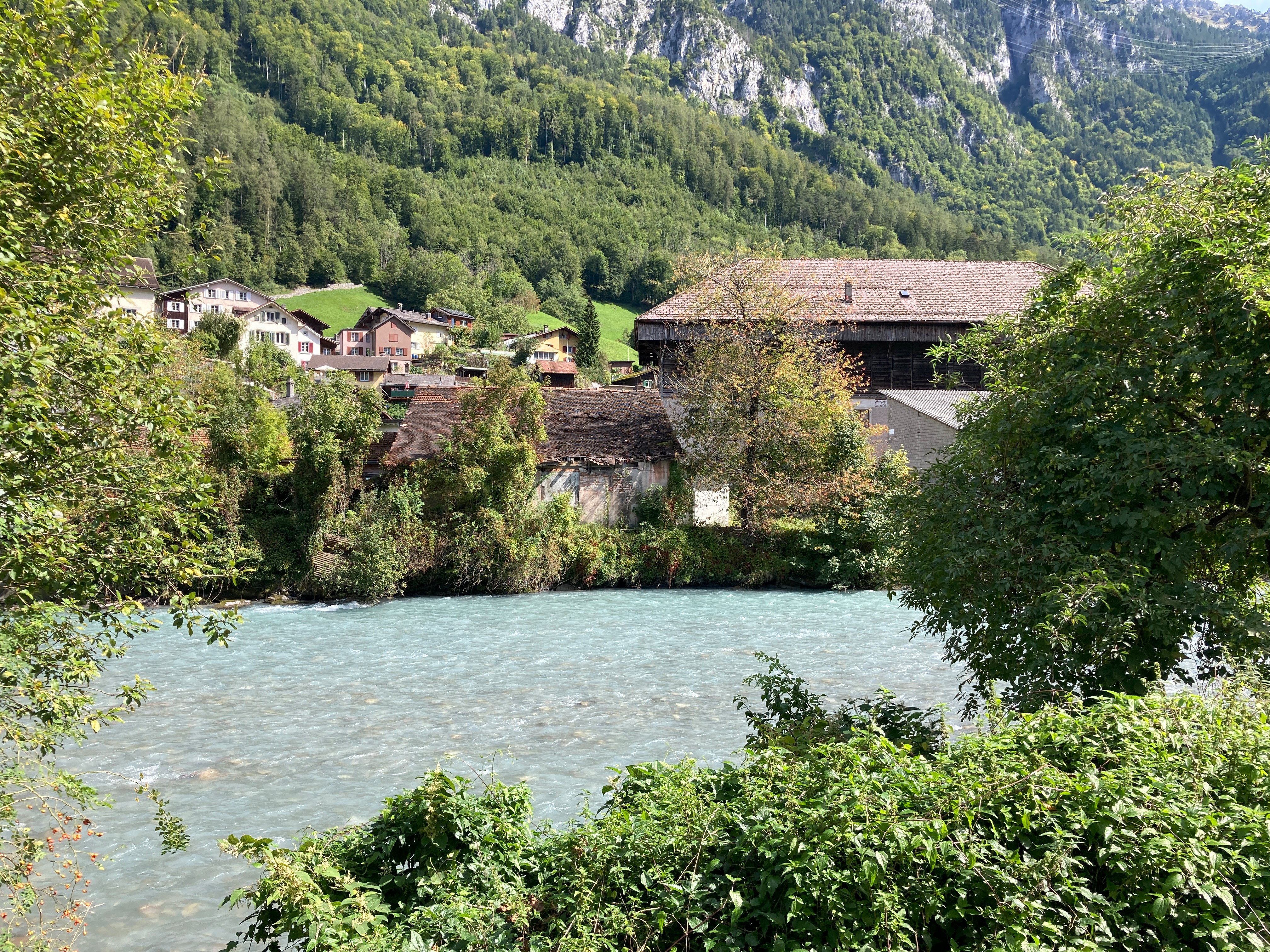 Blick über die Linth von Glarus Richtung Hänggiturm
