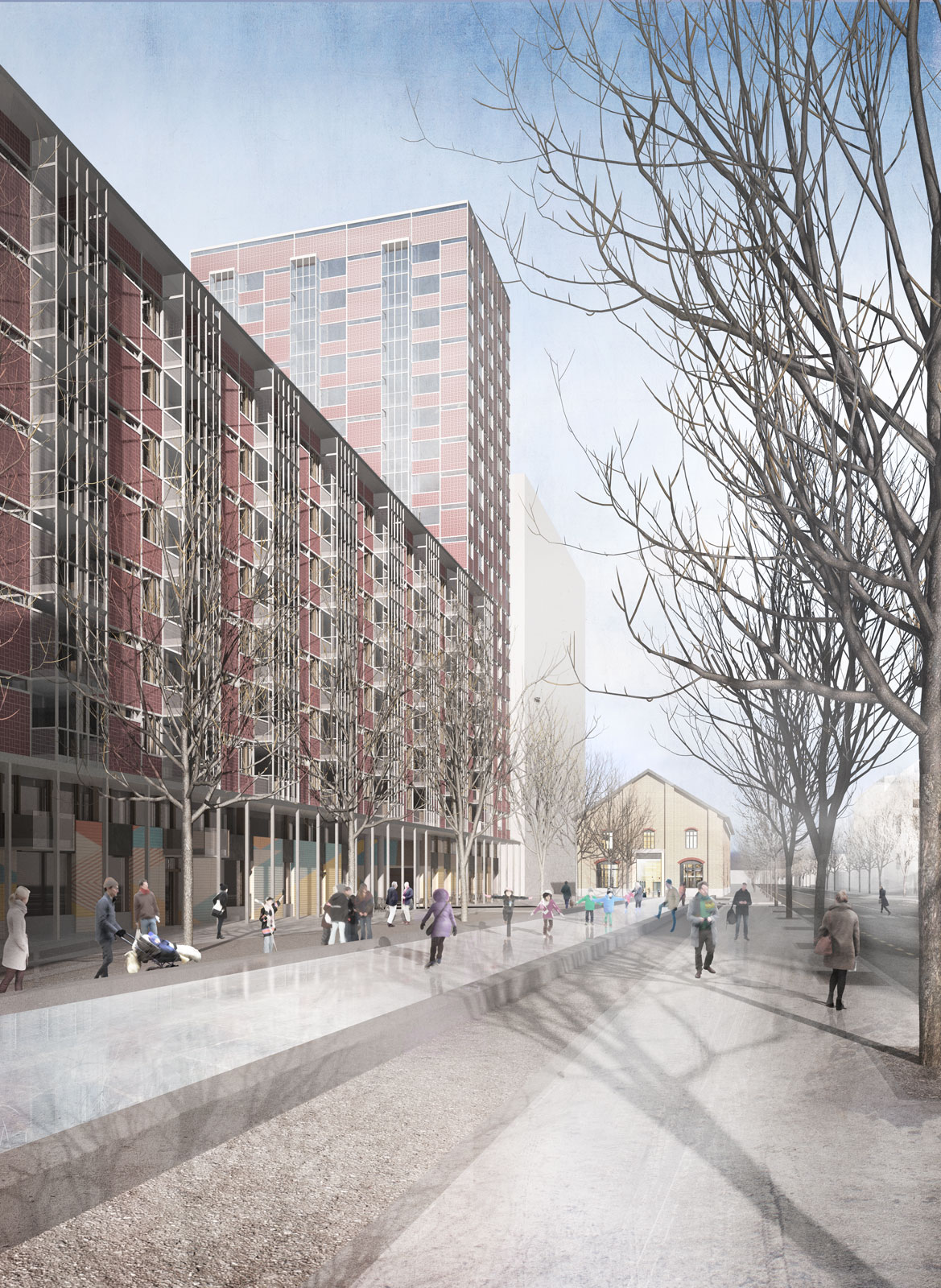 In der zweiten Wettbewerbsstufe wurde deutlich, dass die ‚Rambla’ der heimliche Protagonist des Entwurfs ist. Nicht die Hochhäuser machen aus dem Areal Letzibach-D einen Ort, eine Adresse, sondern die ‚Rambla’. Zu dieser konzeptuellen Schärfung trug die Ausschreibung für das ‚Letzihaus’ gleich nebenan massgeblich bei und zeigte, dass der Gedanke der ‚Rambla’ weit über das Wettbewerbsareal hinaus gedacht werden kann.