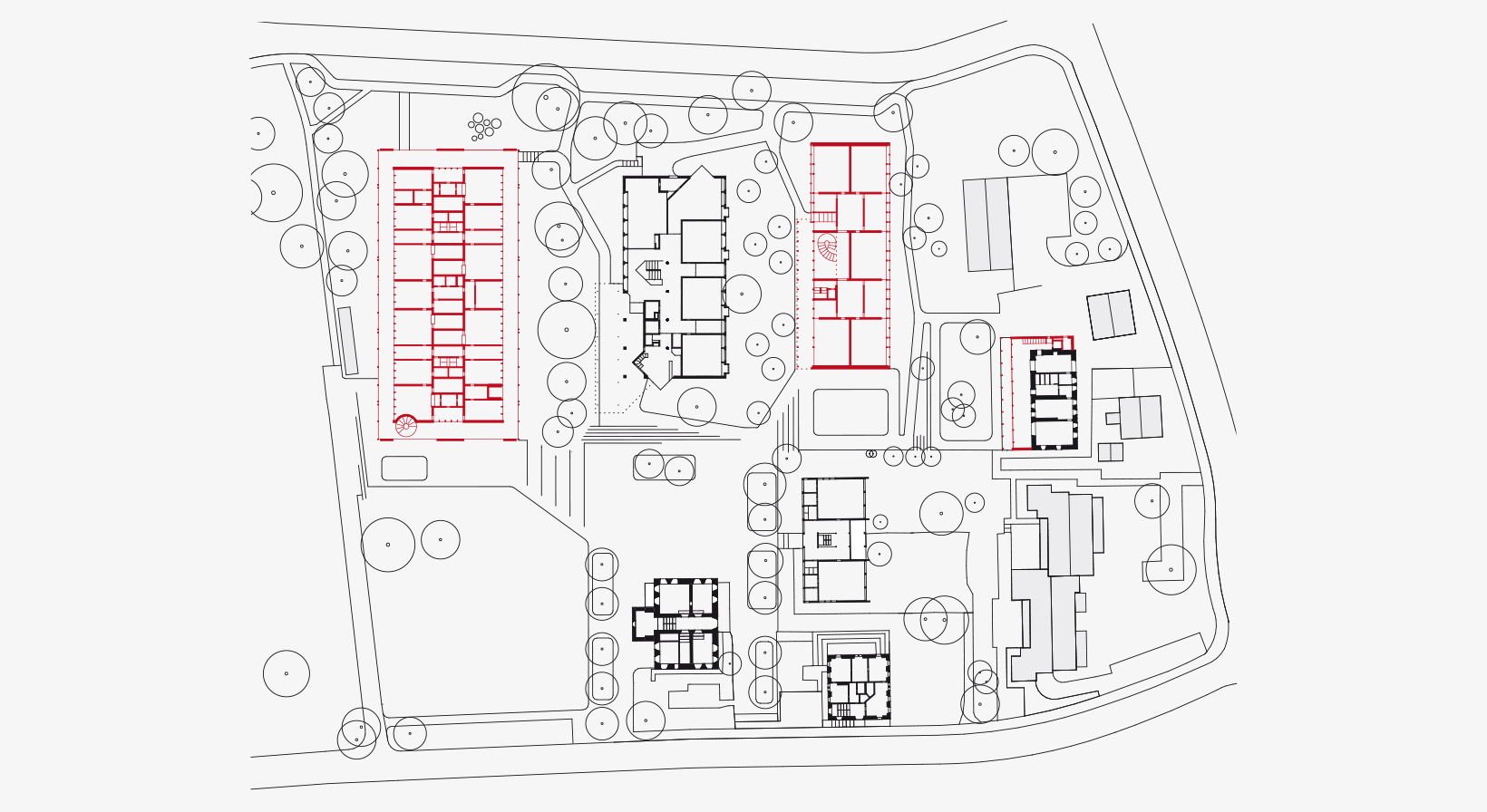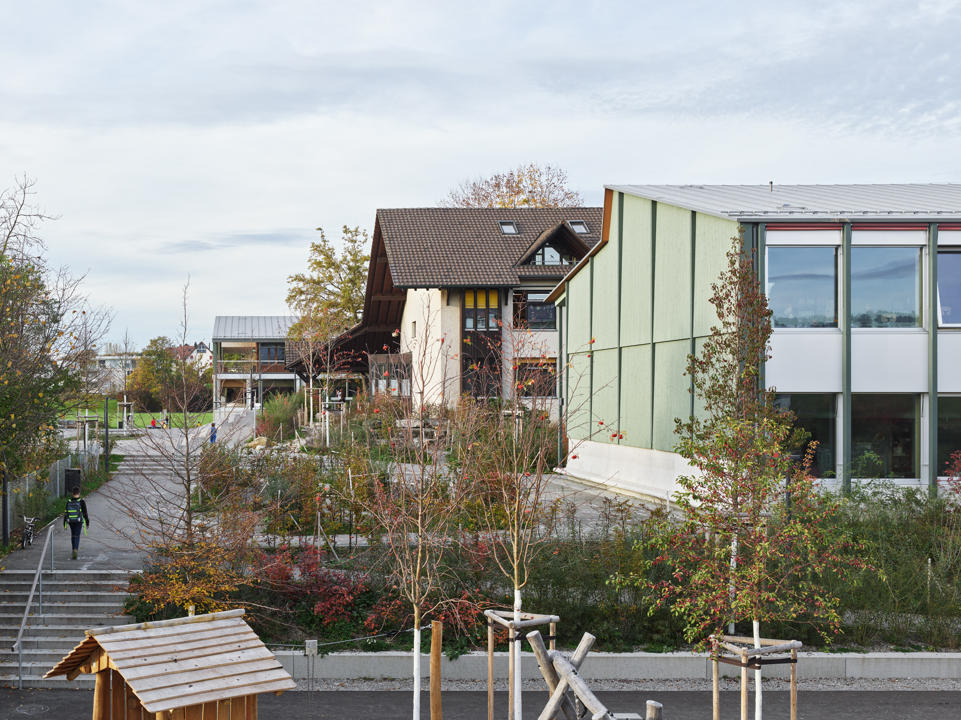 Mit der Erweiterung der Schulanlage soll einerseits der öffentliche Charakter der Schulanlage gestärkt, also seine Zentrumslage betont werden. Dazu wird baulich erheblich verdichtet. Zur Ortsmitte wird das Schulareal deshalb aber nicht. Das Bild des Dorfschulhauses hat es längst weit hinter sich gelassen und nähert sich stattdessen immer mehr einem allen zugänglichen ‚Bildungscampus’ in parkartiger Umgebung an. Der Charakter von ‚Schulbauten im Park’ prägt auch den Ausdruck der neuen Schulgebäude: sie wollen den Parkraum begleiten und orientieren sich an den berühmten Pavillonschulen der Nachkriegszeit – etwa an Beispielen von Jacobsen, Scharoun oder Paillard - die einen innigen Bezug zu Licht, Luft und Natur suchen, um eine anregende, freie Lernumgebung zu schaffen. Der Freiraum übernimmt die Aufgabe, Ober- und Untermettmenstetten feinmaschig miteinander zu verknüpfen, ihre ausfransenden Ränder zu vernähen. Die Wege zwischen den beiden Siedlungskernen legen zusammen mit den begleitenden Gehölzstrukturen die ordnende Hauptrichtung fest. Sie generieren Raumkammern, welche die Gebäudeausrichtung vorgeben und die verschiedenen Nutzungen zonieren.