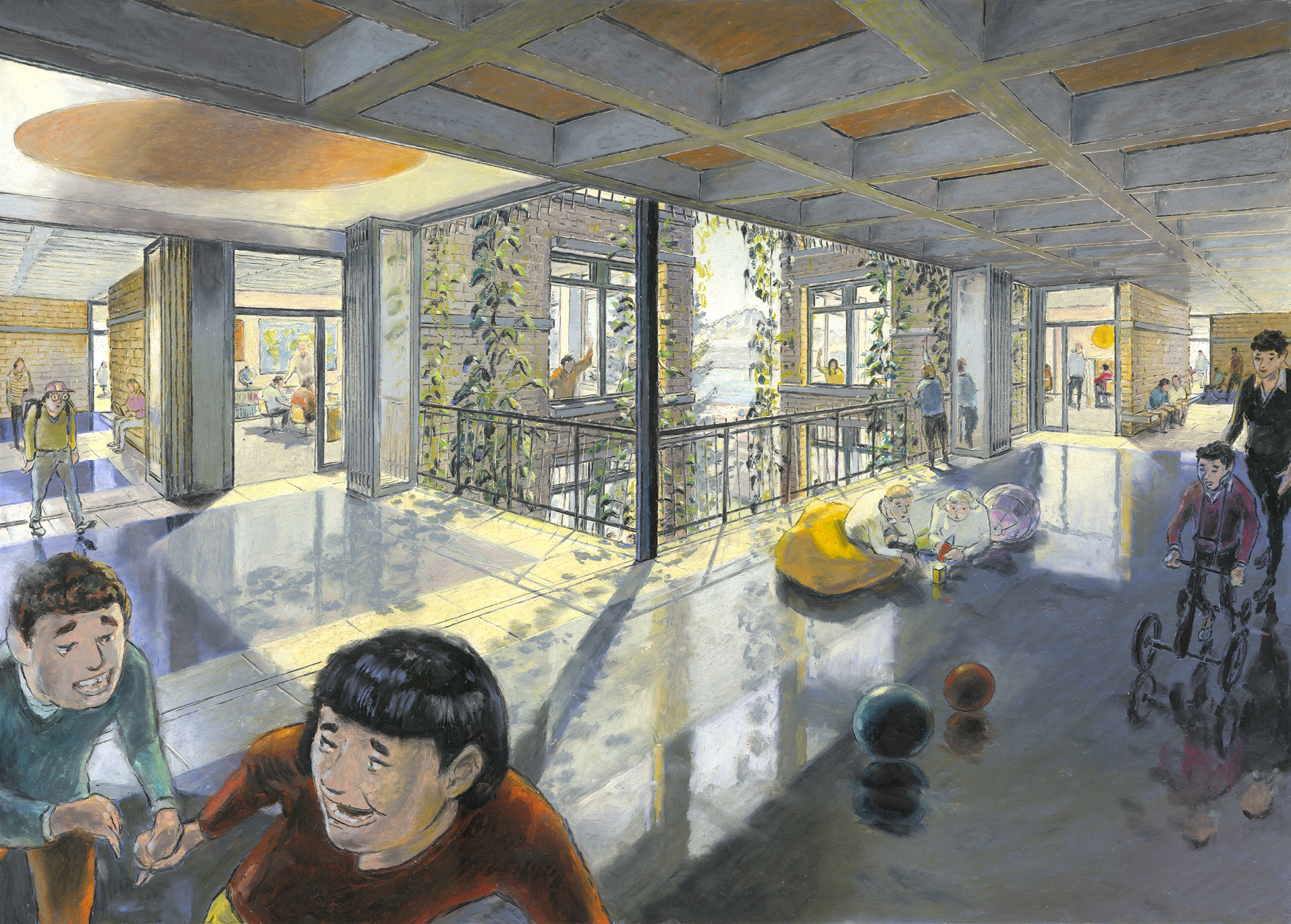 Die Kombination zweier Schulen unter einem Dach ist die grosse Chance, die in der Aufgabe angelegt ist – und zugleich die grosse Herausforderung. Denn es geht ja nicht bloss darum, eine optimale Raumdisposition für die nächsten Jahre zu entwickeln, sondern vielmehr um die Möglichkeit, kontinuierlich den Grad der Verflechtung beider Schulen verhandeln zu können.