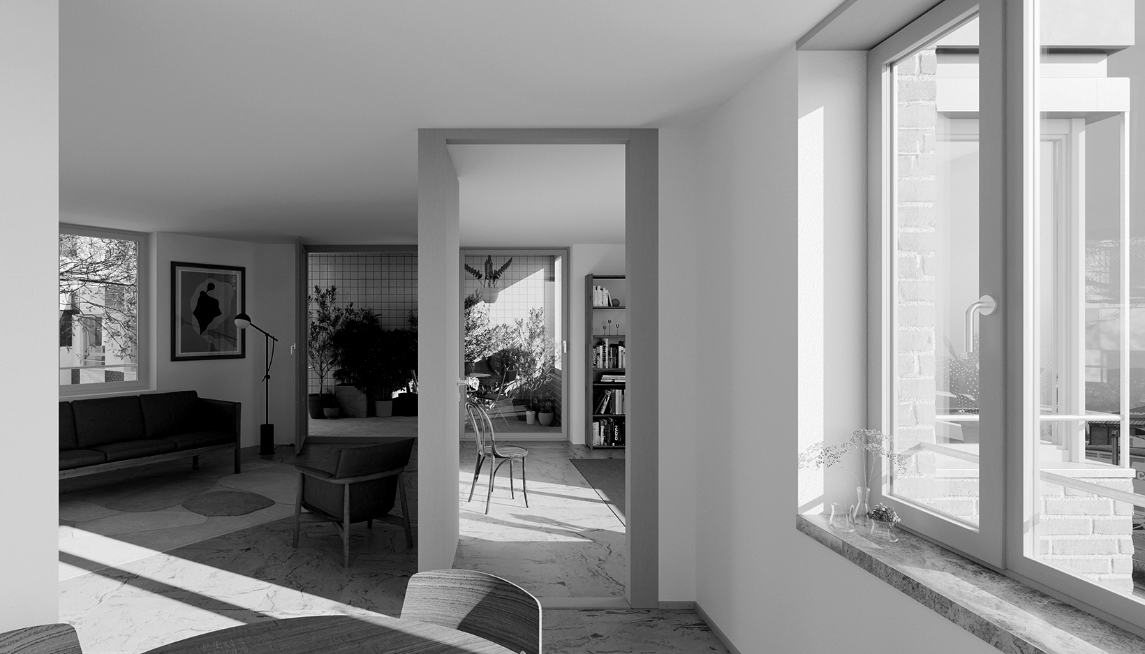 Die Wohnzimmer profitieren von einer zweiseitigen Belichtung - Visualisierung: Studio Blomen