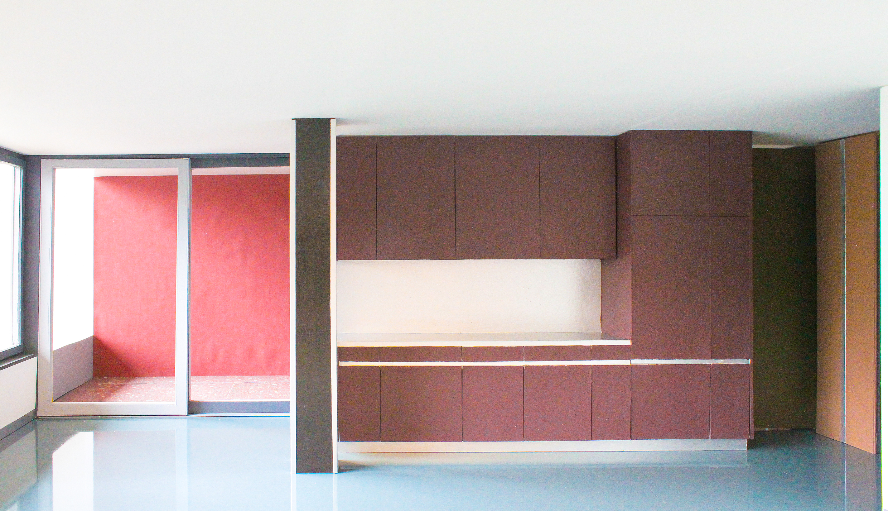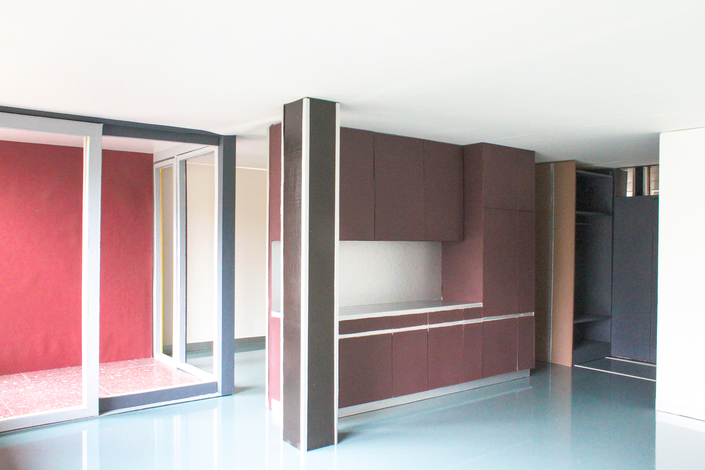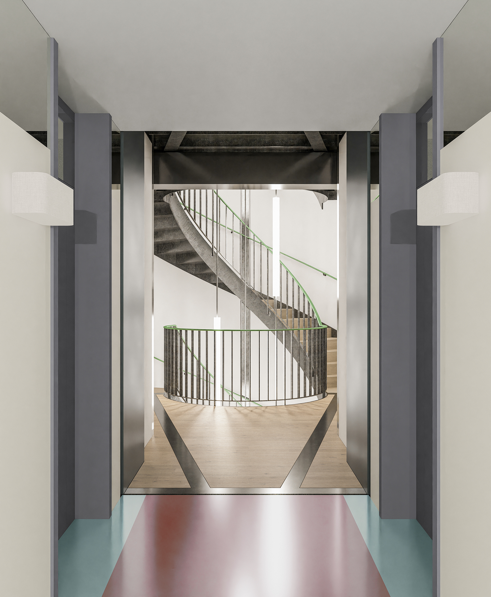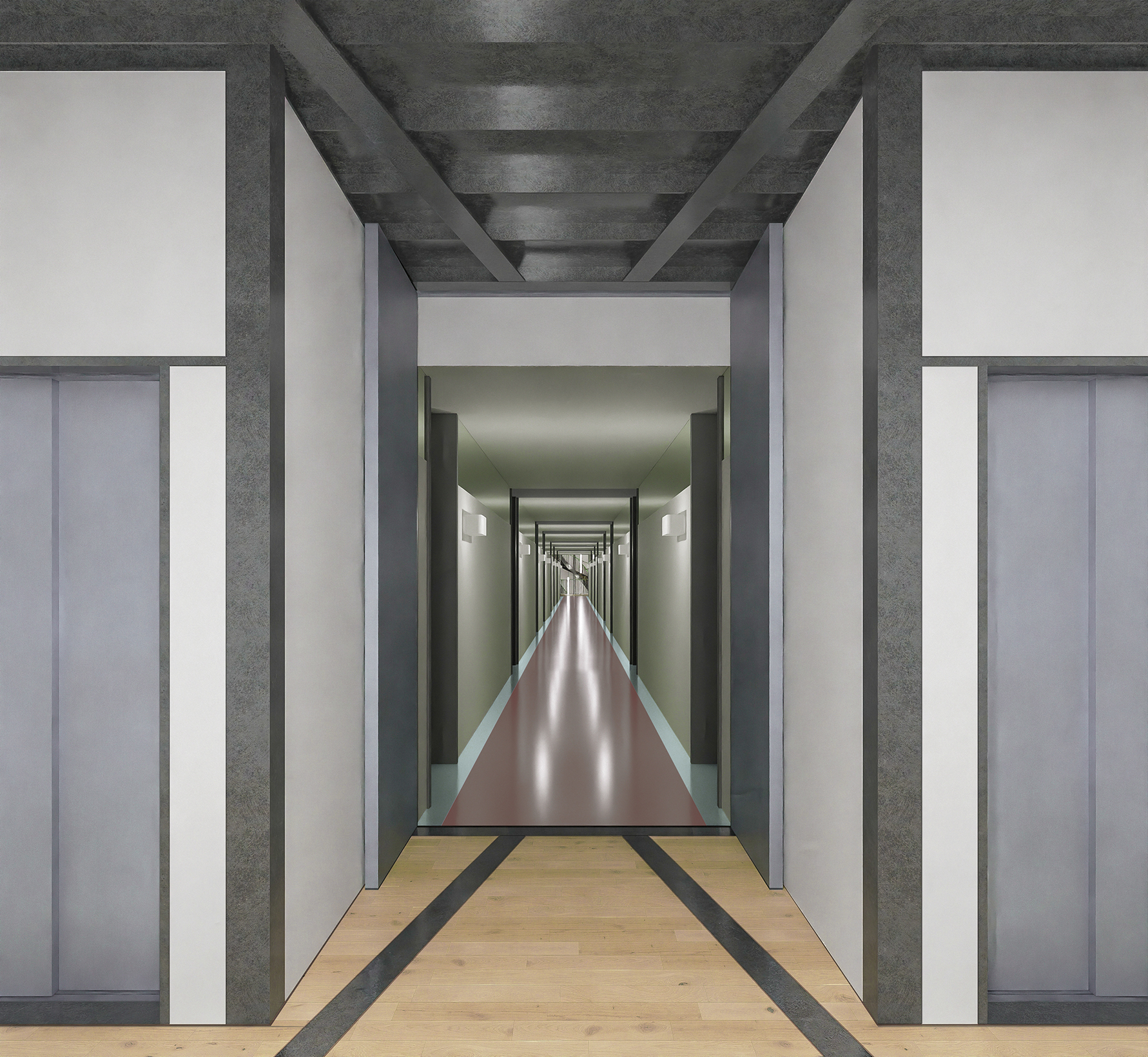 An den Interieurs der luxuriösen Schlafwagen von einst fasziniert uns die Kombination von grösstem Komfort und grösster Effizienz. Auf knappstem Raum finden sich da Wohnräume mit tiefen Sesseln, Klapptische im Licht von Schirmlampen, Garderoben, Schrankabteile, Alkoven zum Schlafen und Badezimmer. Während vor dem Fenster die Welt vorbeizieht, sitzt man behaglich im Sessel und hängt seinen Gedanken nach. Könnte nicht genau dies der Vorstellung vom Wohnen im Micro-Apartment hoch über den Gleisen entsprechen? Nomadisch, mit leichtem Gepäck, aber mit hohem Komfortanspruch und mitten drin im städtischen Geschehen, dessen Geräuschkulisse gedämpft bis ins Innere der Wohnung dringt. Auf dieser ‚Erzählung’ baut die Konzeption der Wohnungen auf. Die Wohngeschosse sind Eisenbahnwagen nachempfunden. So wie die Wagen auflagern zwischen zwei Drehgestellen, so sind die Wohngeschosse aufgespannt zwischen zwei runden Treppenhäusern. Ein breiter Mittelgang verbindet sie und erschliesst die beidseitig aufgereihten Abteile der Wohnungen. Diese werden von einem zentralen Möbelkorpus zoniert, ohne dass dadurch die räumliche Kontinuität des Allraums fragmentiert würde. Geschützt von einer tiefen Loggia, bildet der introvertierte Schlafbereich eine dämmrige, verschwiegene Höhle, während der extrovertierte Wohnbereich zu einem eigentlichen Ausguck wird. So kommen auf knappstem Raum verschiedenste Wohnwelten zusammen. Drehbare Schränke, Türen mit Zapfenbändern und Vorhänge in endlosen Schienen regeln die räumlichen Verhältnisse und erinnern an die mechanischen Verwandlungskünste von Schlafwagen-Interieurs.