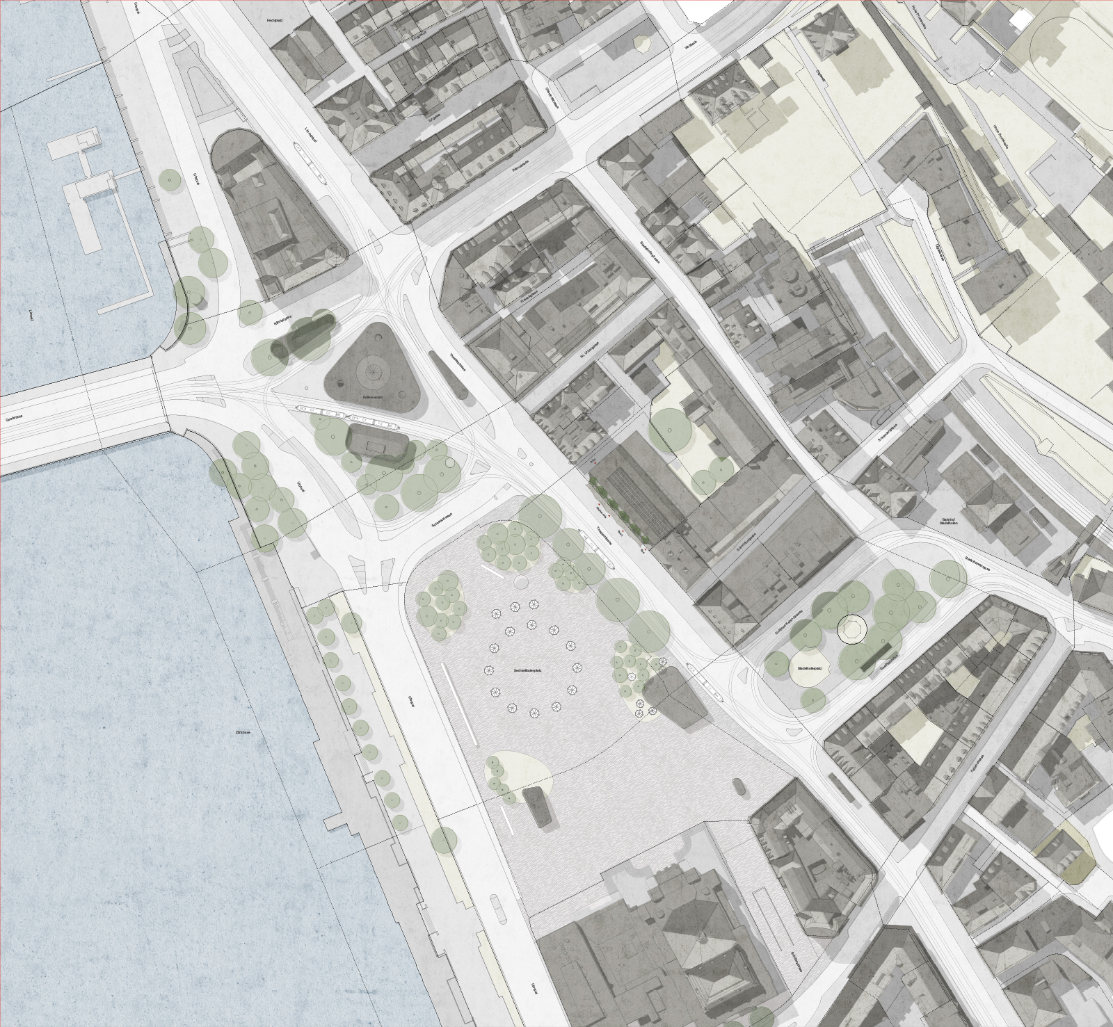 "am See", sondern um die Platztiefe zurückversetzt, und die Häuser am Sechseläutenplatz sind deshalb eher "Häuser am Platz" als "Häuser am See". Als solche sind sie nicht Solitäre, sondern eingebunden in eine
