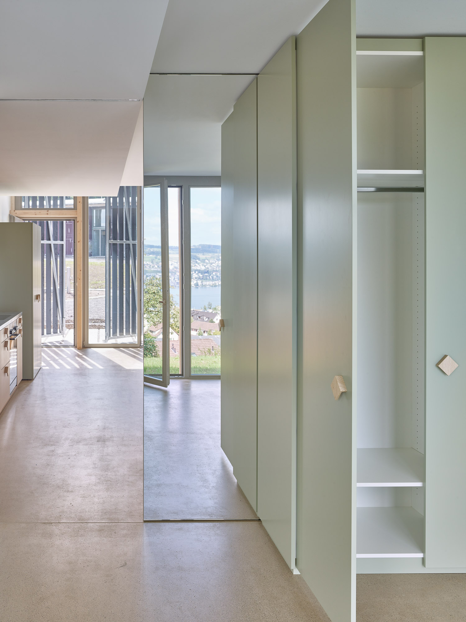 Die Trift-Siedlung am Rand von Horgen-Oberdorf soll aufzeigen, wie nachhaltige Planung aussehen kann, wenn sie umfassend gedacht wird: wirtschaftlich, energieeffizient, sozial vernetzt. Vier Architektenteams konzipieren vier Baufelder, die heute noch unbebaut sind. Verbunden werden die Areale auf zwanglose Art durch einen Weg, der breit und komfortabel ist, weil er höhenparallel verläuft. Das Baufeld von Esch Sintzel ist von einer sanften Kuppe gekennzeichnet, der einzigen ebenen Fläche im Hangverlauf.