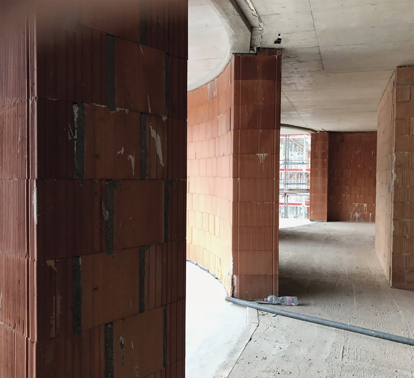 Die Referenz auf traditionelle Siedlungen wird in der Konstruktion – Einsteinmauerwerk mit Kratzputz – fortgeführt.