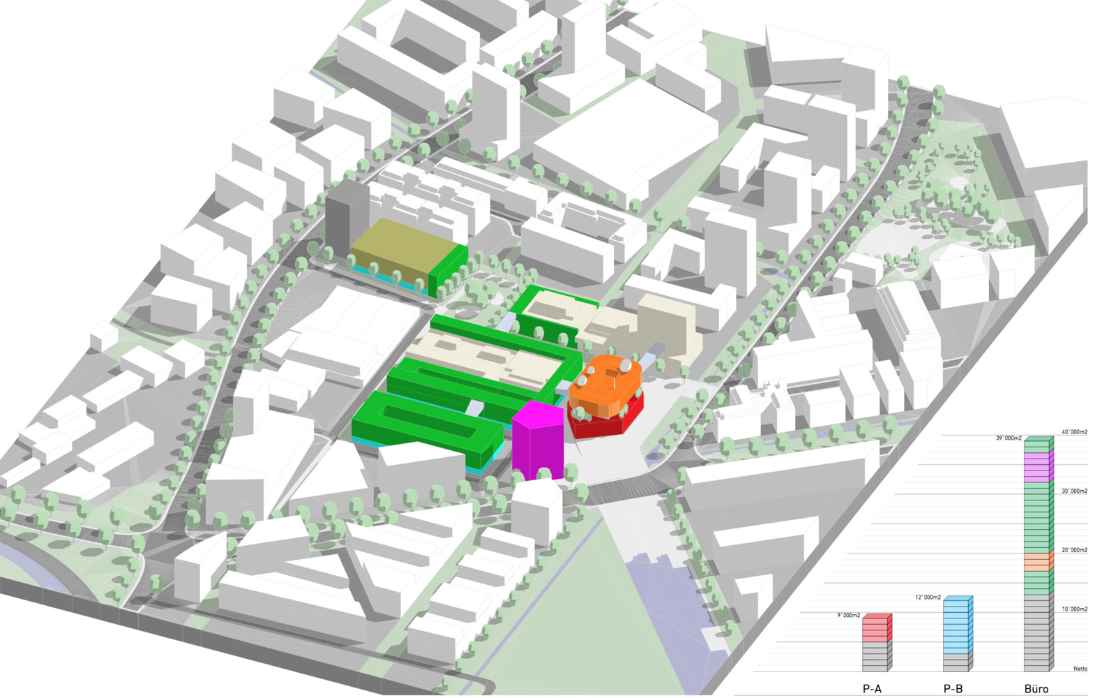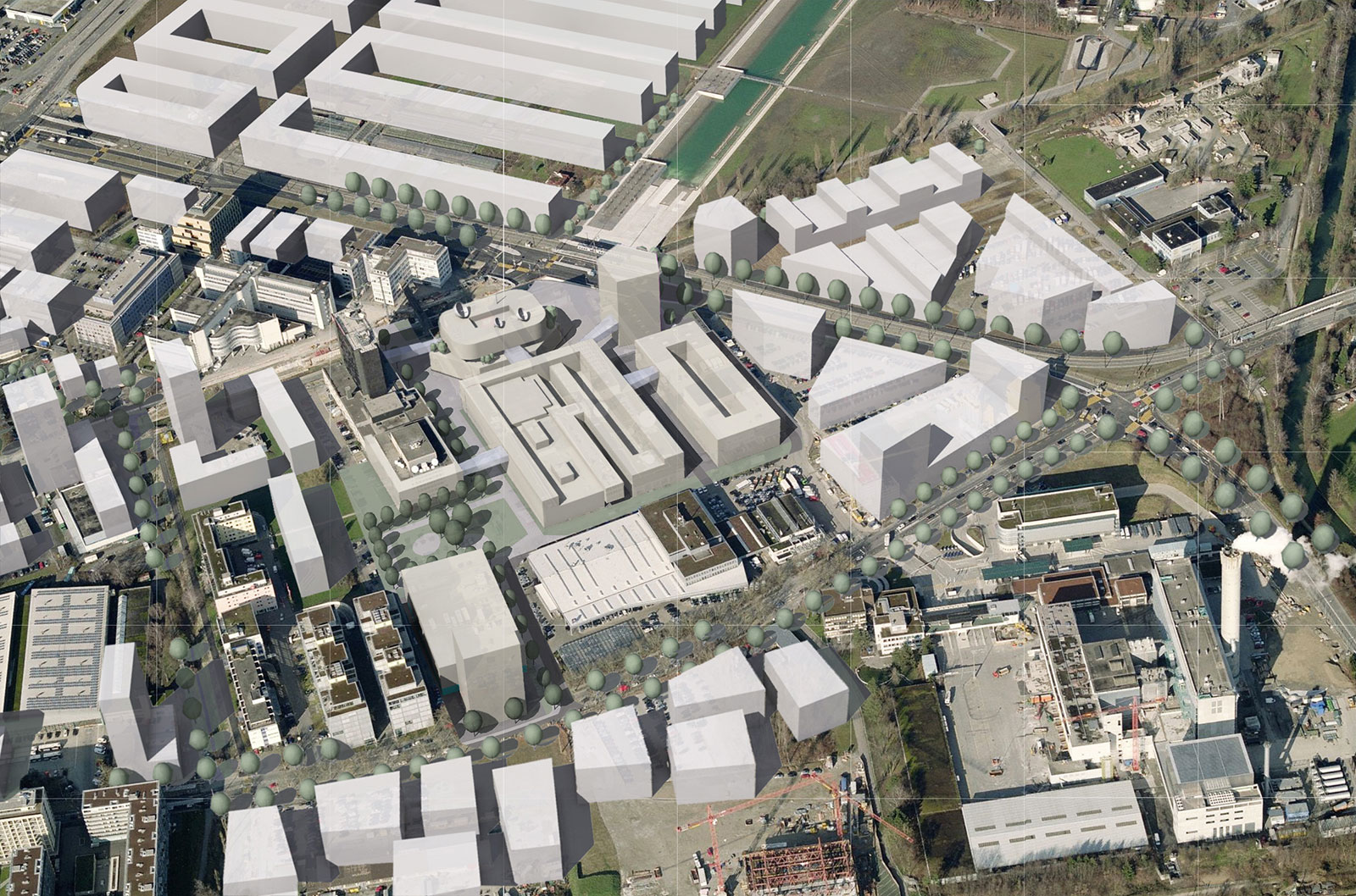 Convergence of the Zurich and Glatttalstadt sites: The coalescence would make the outer edges of the district the places where the largest number of changes are possible. This transposes what were rear sides to fronts.