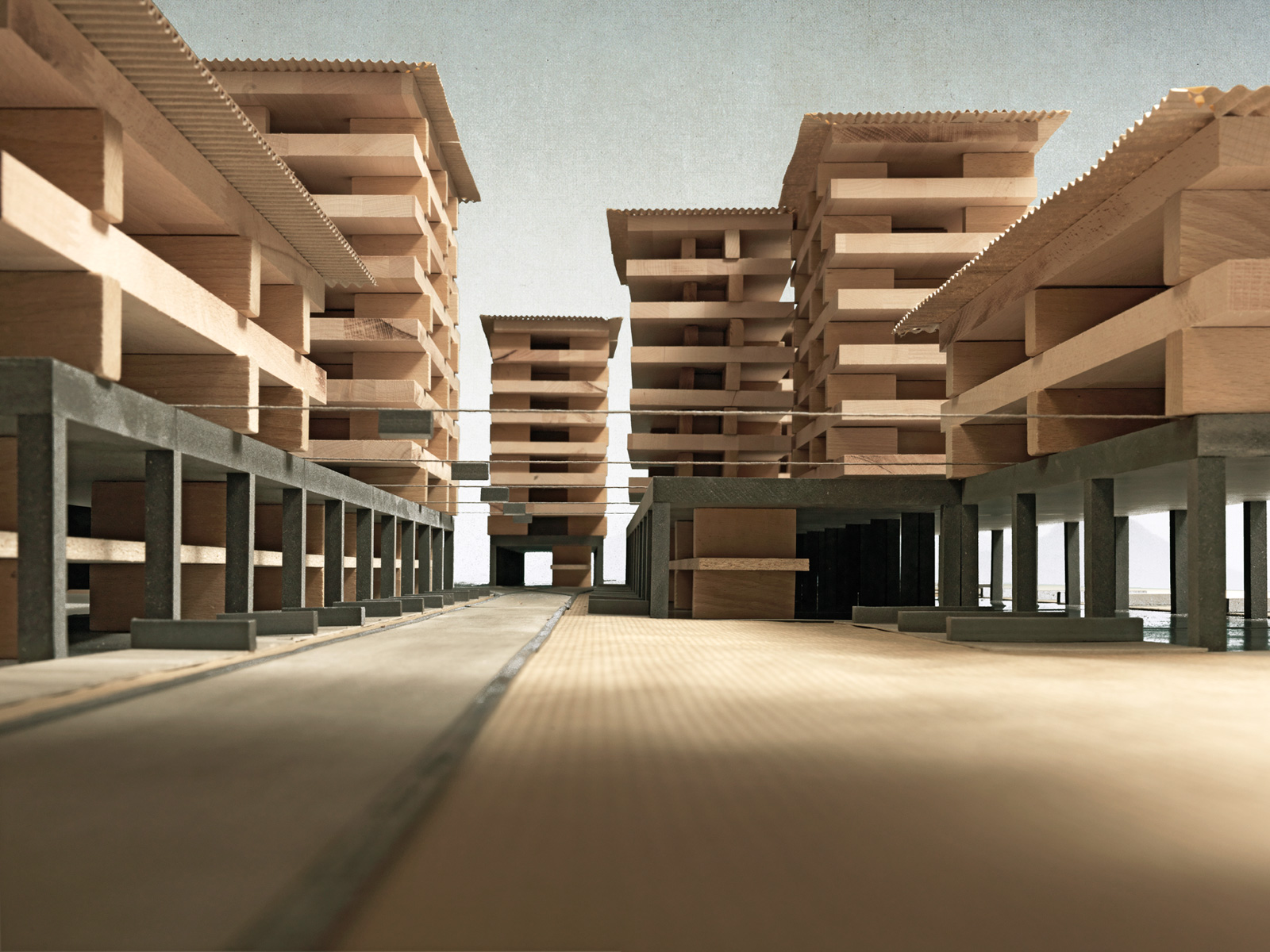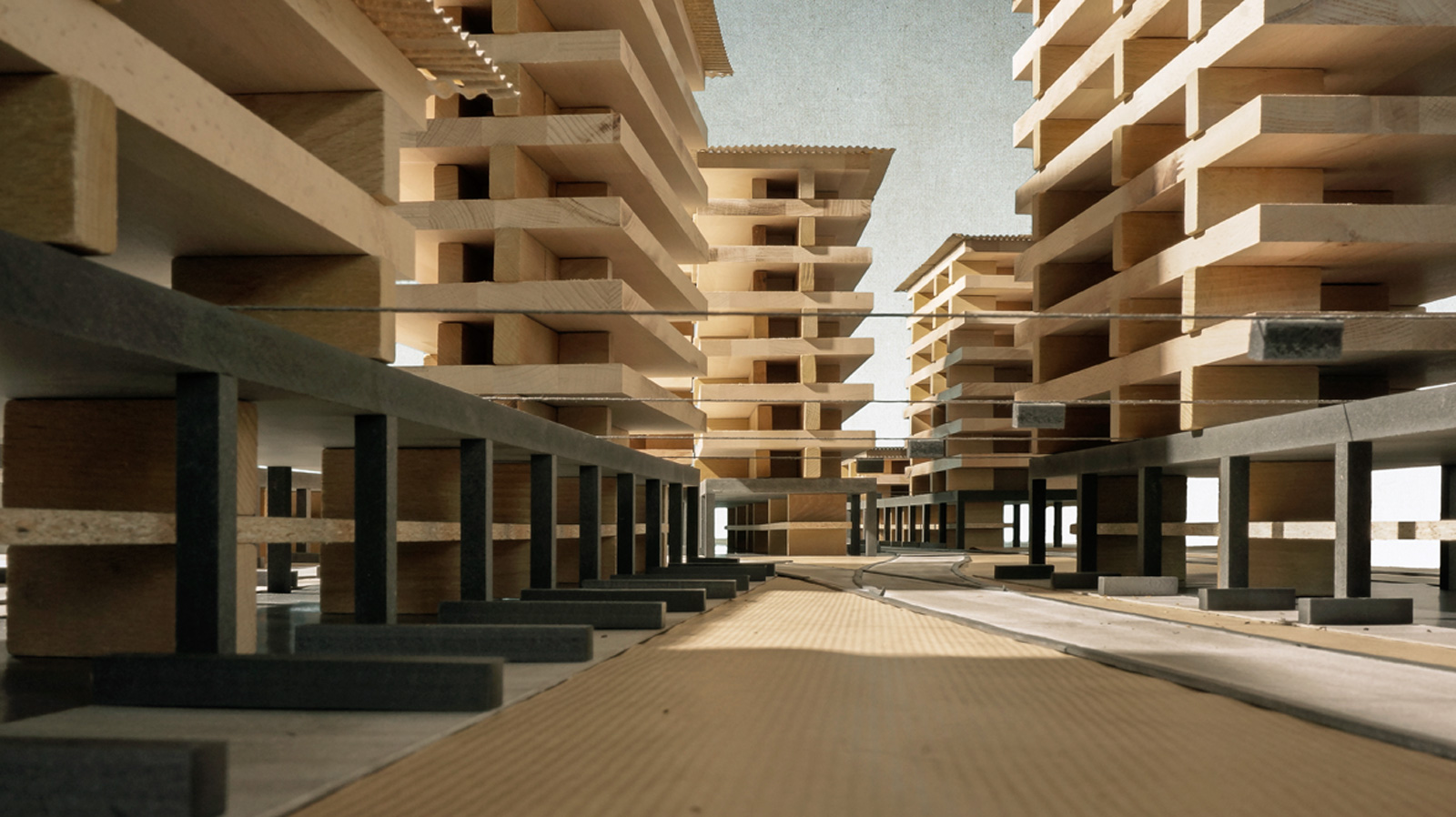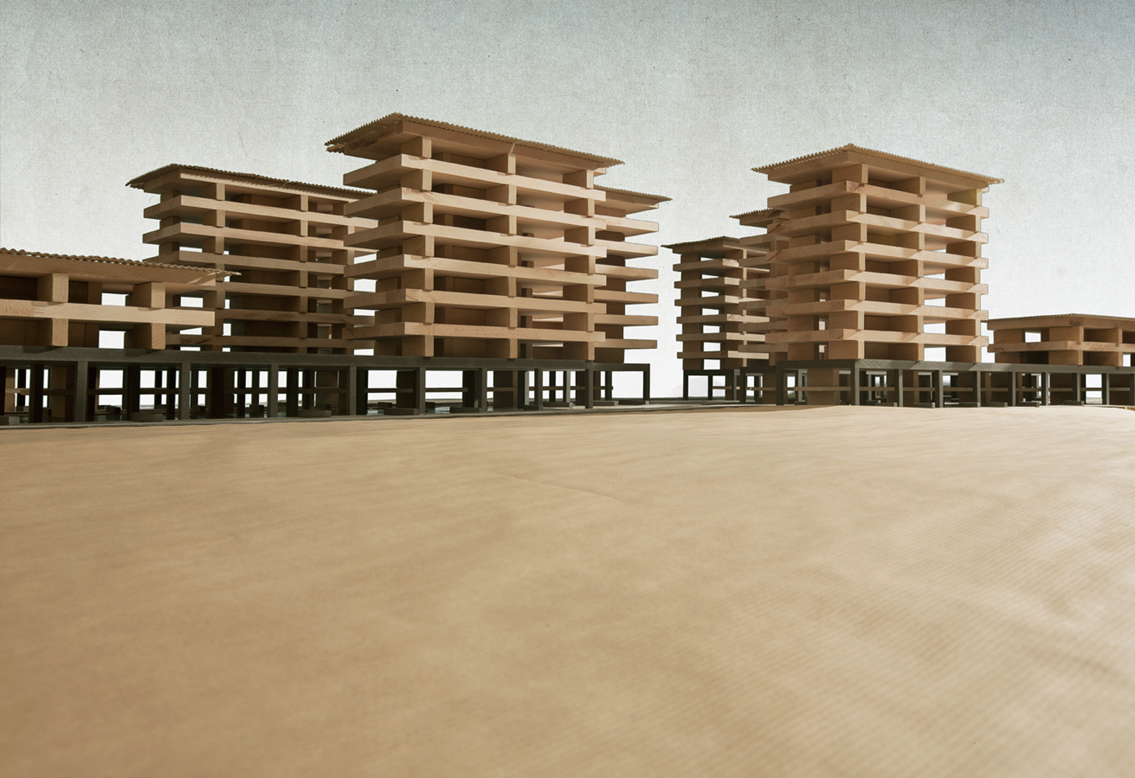 Because recent local history shows the force of the dynamics that urban development can unleash, the strategy followed in this case is equally both open and robust. The neutral structure of the base of the building enables both residency and working. The residential towers emerge from this mineral base, conceived as entirely wooden structures, their materiality coming full circle back to the design’s point of departure – the piles of boards on the railway line.
